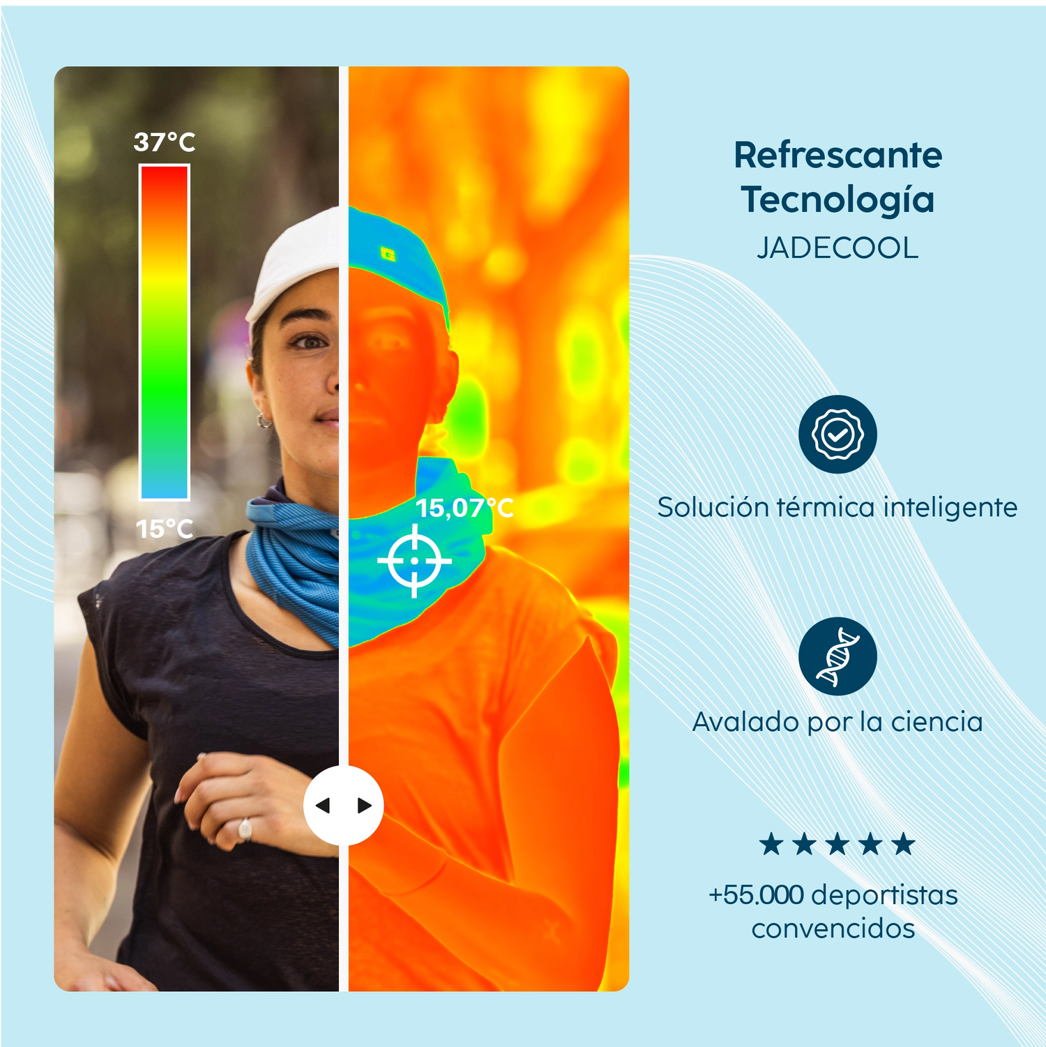 ¿Necesitas refrescarte sin mojarte? Gracias a su tecnología JADECOOL™, este collar refrescante se activa en pocos segundos. Ligero, reutilizable y sin restricciones, te acompaña a todas partes cuando sube el calor.